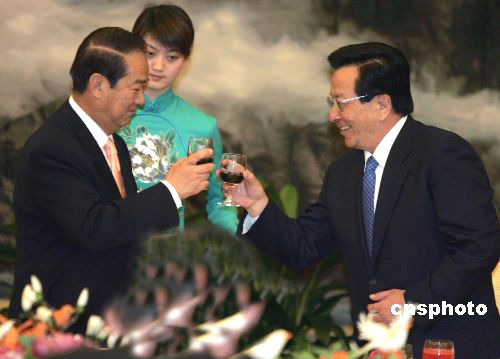 五月十一日晚,中共中央政治局常委曾慶紅在北京人民大會堂宴請親民黨主席宋楚瑜一行。作者:任晨鳴