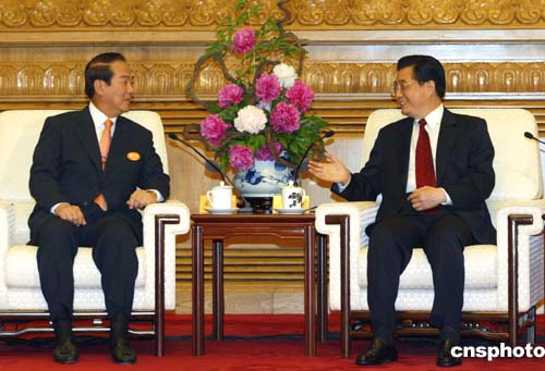 胡錦濤強調(diào),兩岸合則兩利,分則兩害。構(gòu)建和平穩(wěn)定發(fā)展的兩岸關(guān)系,對兩岸同胞有利,對中華民族的長遠發(fā)展有利。我們黨愿同貴黨繼續(xù)為此一道努力。今年三月,我提出了新形勢下發(fā)展兩岸關(guān)系的四點意見,即:堅持一個中國原則決不動搖,爭取和平統(tǒng)一的努力決不放棄,貫徹寄希望于臺灣人民的方針決不改變,反對“臺獨”分裂活動決不妥協(xié)。