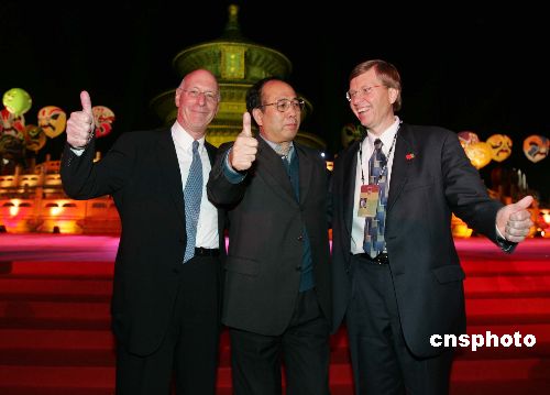 5月17日晚,北京市市長(zhǎng)王岐山在天壇祈年殿舉辦歡迎《財(cái)富》論壇嘉賓盛宴后,全力投入籌備此次會(huì)議的國(guó)務(wù)院新聞辦主任趙啟正與美方客人共慶會(huì)議成功。作者:任晨鳴