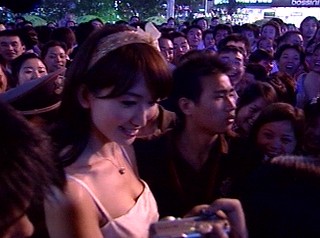 林志玲在臺上出現(xiàn)不過短短的15分鐘,臺下的觀眾卻從5點半就開始排隊進場,又等了3個小時才見到她的廬山真面目。甚至還有民眾表示,以后找女朋友,要找像林志玲一樣甜美的,看來素來口味刁鉆火辣的四川觀眾,看來倒是相當(dāng)?shù)男蕾p這位甜膩膩的臺灣第一名模。