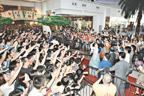 為了一睹大長(zhǎng)今真正風(fēng)采,昨早清晨四時(shí)許已有巿民到商場(chǎng)排隊(duì),無線在四十五分鐘內(nèi)已將三百五十個(gè)籌派完,更印制了五千把紙扇派給巿民。答謝會(huì)在下午三時(shí)舉行,愈近舉行時(shí)間巿民愈多,到下午一時(shí),商場(chǎng)甚至封鎖地下至一樓的自動(dòng)電梯及部分出口,防止人流繼續(xù)涌入。到二時(shí)至三時(shí),更是人流的最高峰。為確保李英愛的安全,無線派出了20多名保安,聯(lián)同商場(chǎng)方面的八十名保安,一起在場(chǎng)維持秩序,商場(chǎng)亦同時(shí)知會(huì)荃灣警署,慎防意外發(fā)生。