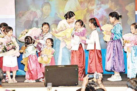 萬眾期待的李英愛,身穿韓服于三時(shí)十五分到場(chǎng),現(xiàn)場(chǎng)觀眾紛紛站起來,搖著手上的紙扇歡迎她,又以韓文高呼“我愛你”。她走紅地氈進(jìn)場(chǎng)時(shí),除了一直保持笑容,還向觀眾揮手及握手,令觀眾情緒十分高漲。她在后臺(tái)逗留了十分鐘,到三時(shí)廿五分才上臺(tái),即時(shí)以廣東話向現(xiàn)場(chǎng)巿民打招呼:“大家好,你好嗎?我系李英愛!比珗(chǎng)立時(shí)歡呼,她繼而用韓文道:“多謝大家在這里,希望大家學(xué)大長(zhǎng)今的精神,祝大家健康快樂。”她又說好開心跟大家近距離親密接觸,希望大家繼續(xù)愛她支持她,又以廣東話說:“多謝!多謝!”