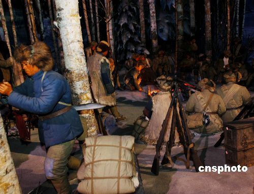 東北抗戰(zhàn)牽制了數(shù)十萬日本關(guān)東軍入關(guān)作戰(zhàn),有力地配合了全國的抗戰(zhàn)。圖為沈陽“九·一八”紀(jì)念館內(nèi)表現(xiàn)東北抗日聯(lián)軍在深山老林艱苦抗戰(zhàn)的場景。作者:王麗南
