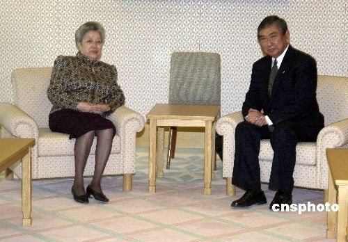 中國(guó)國(guó)務(wù)院副總理吳儀五月二十三日在日本東京會(huì)見(jiàn)日本眾議院議長(zhǎng)河野洋平。作者:王健