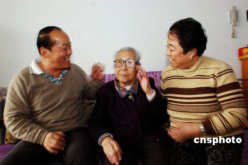 一九九一年回到日本居住的日本遺孤杜冬梅,因不忍中國的養(yǎng)母在長春無人照顧,現(xiàn)在又回到了中國養(yǎng)母身邊。她說,我當(dāng)時(shí)遺留在中國時(shí)曾患有淋巴結(jié)核,下巴淌著膿,是養(yǎng)父母收養(yǎng)我并給我一次次治病,后來又供我上了大學(xué),沒有養(yǎng)父母對(duì)我的愛,也許我早就死了。據(jù)資料記載,在中國東北日本侵華戰(zhàn)爭后留下了大約五千名日本遺孤。圖為杜冬梅和丈夫與養(yǎng)母于世芳聊天逗笑。作者:王麗南
