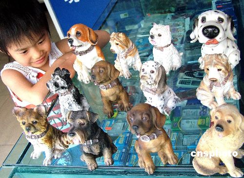 5月23日,一個小朋友在重慶市榮昌縣某旅游產(chǎn)品商店選購樹脂材料制作的小動物玩具!傲弧钡絹砬,樹脂“寵物”由于造型各異、體態(tài)輕巧且色澤分明,受到小朋友們的喜愛。作者:朱蕓鋒