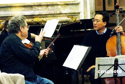 5月25日,世界著名大提琴家馬友友和小提琴家伊扎克·帕爾曼在紐約一起排練。他們將在帕爾曼音樂(lè)培訓(xùn)班學(xué)生畢業(yè)典禮上同臺(tái)獻(xiàn)藝,屆時(shí)備受期待的兩位樂(lè)壇巨擘的合作,將給世界樂(lè)迷們帶來(lái)美妙享受。作者:Ic/cnsphoto