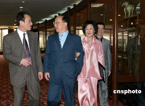在北京參加2005年世界市長(zhǎng)論壇的臺(tái)中市長(zhǎng)胡志強(qiáng)與夫人,6月9日抽空在北京游覽購(gòu)物。作者:任晨鳴