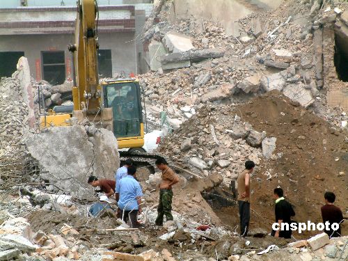 此時,涉嫌私藏炸藥的嫌疑人張學泉家的“遺址”上,大型挖掘機正在一個個帶白色遮陽帽的人的指揮下,在挖已被夷為平地的房子殘渣、高如小山的瓦礫和碎磚塊。