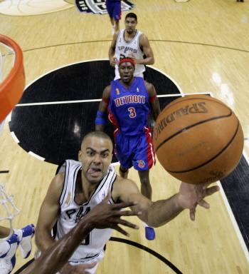 今年的總決賽,比賽雙方分別是2003年的總冠軍馬刺和2004年的總冠軍活塞。這也是兩支防守出色的球隊(duì)。剛剛打完東部決賽第七場的活塞隊(duì)更早進(jìn)入狀態(tài),第一節(jié)比賽開始后,活塞隊(duì)反客為主,在比賽中很快就占據(jù)上風(fēng),在連得6分后以9-4領(lǐng)先馬刺。此后,活塞隊(duì)繼續(xù)擴(kuò)大戰(zhàn)果,將領(lǐng)先優(yōu)勢擴(kuò)大到10分以上。不過此后漸漸找回感覺的馬刺隊(duì)展開反擊,回贈了一個7-2的小高潮,將比分差距縮小。第一節(jié)比賽結(jié)束時(shí),活塞以20-17領(lǐng)先馬刺。