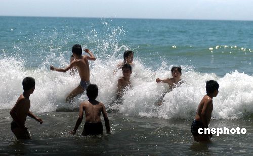 6月11日,海南博鰲16支龍舟隊(duì)冒著烈日在萬(wàn)泉河入海口舉行精彩激烈的龍舟大賽,慶祝傳統(tǒng)佳節(jié)端午節(jié)。在博鰲海濱,不少村民攜兒帶女下海游泳,在端午節(jié)這一天俗稱(chēng)洗龍水祈平安。作者:蒙鐘德