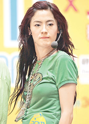 昨天柏芝穿上綠色T恤襯低腰褲作hip hop打扮,跳舞時(shí)卻配上“特別效果”,胸前出現(xiàn)“凸點(diǎn)”現(xiàn)象之余,黑色內(nèi)褲邊也隨著拍子頻頻曝光。柏芝更是語出驚人,在與fans跳舞時(shí),她竟向fans說:“你用下面(下半身)頂住記者就得。”十分不文。當(dāng)她唱《新聞女王》時(shí),有人假扮狗仔隊(duì)偷拍她,柏芝就用屁股把他頂開。
