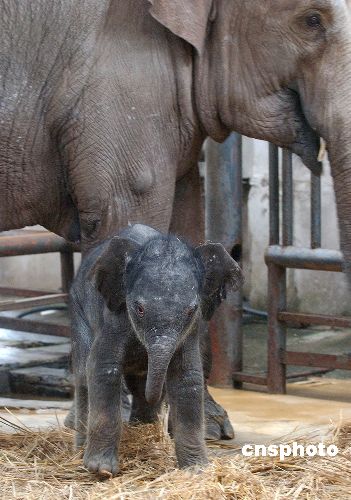重慶動(dòng)物園二十歲的明星大象伊里六月九日凌晨順利產(chǎn)下一子。小象出生時(shí),高約八十五厘米,重約一百公斤,目前未定名,估計(jì)一周以后可以與游人見面。圖為小象與母親在一起。作者:郭晉嘉