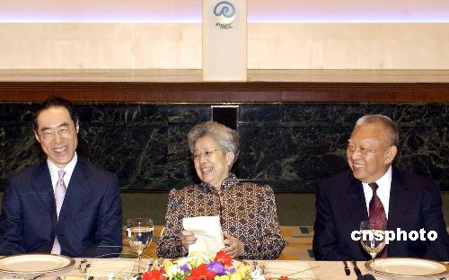6月13日,國家副總理吳儀與全國政協(xié)副主席董建華(右)及香港署理行政長官唐英年(左)出席太平洋地區(qū)經(jīng)濟(jì)理事會開幕主題演講午餐宴會。作者:洪少葵