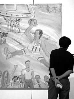 記者在油畫作品展現(xiàn)場看到,虞村在“圖像演義”中,特意在自己創(chuàng)作的油畫旁貼上創(chuàng)作的原型:照片。眾多知名人物聶衛(wèi)平、周潤發(fā)、姚明、容祖兒等匯聚一堂。但乍一看油畫卻又無法認出明星本人,F(xiàn)場有不少觀眾對這些畫作提出了質(zhì)疑,認為畫家所創(chuàng)作的人物油畫中除了聶衛(wèi)平有些神似外,其他人物都被丑化、夸張了,很難看出本人的一點影子。