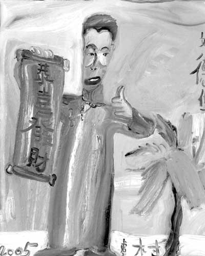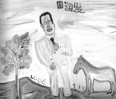 “周潤發(fā)”看上去竟然像個日本人;“姚明”的腦袋和身子幾乎一樣長;“容祖兒”一只眼睛大,一只眼睛小,張著一張血紅色、與面部不相稱的大嘴;“劉德華”的腦袋是歪的。而所有人物的比例完全失調(diào),表現(xiàn)的筆觸完全放在了臉部,身子、腿完全像是嫁接的。