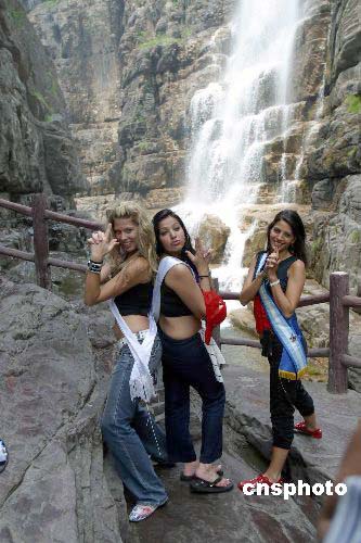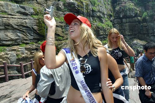 六月十四日,國際旅游小姐大賽參賽佳麗在云臺山天瀑下留影。國際環(huán)球旅游小姐河南巡游行最后一站在河南焦作云臺山世界地質(zhì)公園,云臺山園區(qū)是中國國家森林公園,世界地質(zhì)公園,山勢險(xiǎn)峻、溝壑縱橫、常年云纏霧繞。擁有紅石峽、泉瀑峽、云臺天瀑、潭瀑峽、情人瀑等具有世界地質(zhì)特征的重要景點(diǎn)。