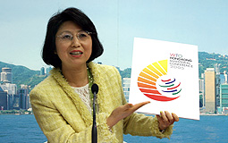 中新網(wǎng)6月15日電 世界貿(mào)易組織第6次部長級會議今年底將在香港舉行,香港特區(qū)政府昨日公布會議標志,統(tǒng)籌辦事處總監(jiān)王榮珍表示,標志以船帆作為主題,融合世貿(mào)標志,象征香港與世貿(mào)組織的融洽關系,并寓意會議前景可穩(wěn)步向前。