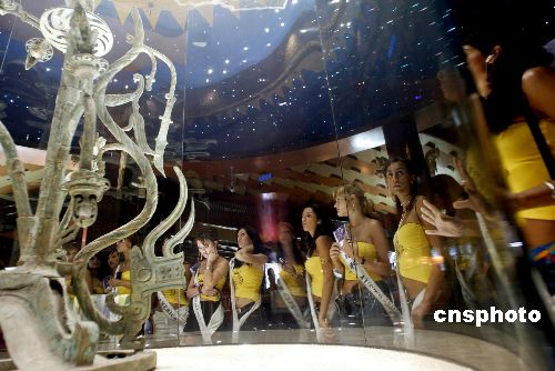 六月十五日,二○○五國(guó)際旅游小姐冠軍總決賽的來自七十五個(gè)國(guó)家和地區(qū)的旅游形象大使,來到四川省廣漢市,參加二○○五中國(guó)四川三星堆國(guó)際旅游文化節(jié)暨二○○五國(guó)際旅游小姐最具魅力小姐冠軍大賽決賽,各國(guó)旅游小姐在參觀三星堆博物館時(shí),被古蜀文明深深吸引。圖為各國(guó)佳麗在三星堆博物館館藏文物“神樹”前流連忘返。作者:盛佳鵬