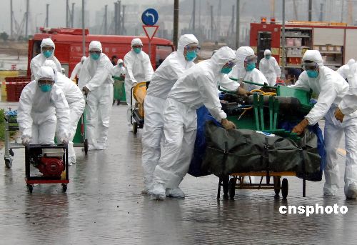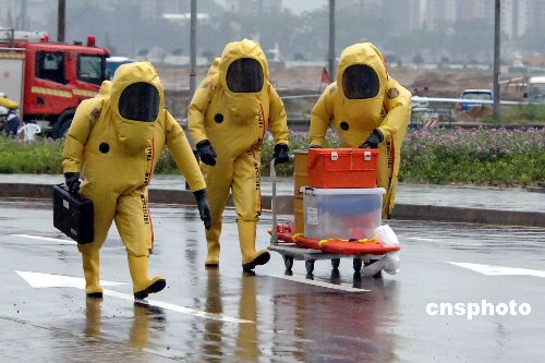 澳門警方接報,正在舉行體育比賽的“澳門蛋”出現(xiàn)三個持白色疑為生化爆炸物的匪徒,劫持群眾并施暴。按照反恐預案,一支由司法、治安、消防警察,海關(guān)、衛(wèi)生、防護專業(yè)人員組成的十幾支應急隊伍的車輛,拉響警笛呼嘯著趕到事發(fā)地。