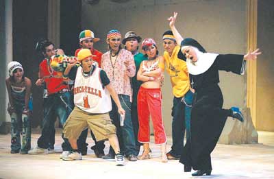 很多人都對(duì)黑人女星烏比·戈德堡主演的喜劇電影《修女也瘋狂》記憶猶新,《跑路救天使》即改編自此片。該劇在2004年由臺(tái)灣果陀劇場(chǎng)推出,當(dāng)時(shí)曾創(chuàng)下連演31場(chǎng)場(chǎng)場(chǎng)爆滿的記錄,很多場(chǎng)次中謝幕時(shí)間竟長(zhǎng)達(dá)30分鐘。而果陀劇場(chǎng)也是臺(tái)灣戲劇界的重要組成部分,它一直致力于“中文歌舞劇”的演出,獲得過(guò)多項(xiàng)表演大獎(jiǎng),被業(yè)內(nèi)人士稱為“東方百老匯”。有意思的是該劇中還使用了很多觀眾耳熟能詳?shù)牧餍懈枨瘛蹲x你》、王菲的《我愿意》、張惠妹的《姐妹》、劉文正的《誰(shuí)在眨眼睛》等等,而且風(fēng)格與我們熟悉的曲調(diào)有了很大改變,像《讀你》就被唱出了“圣歌”的味道。