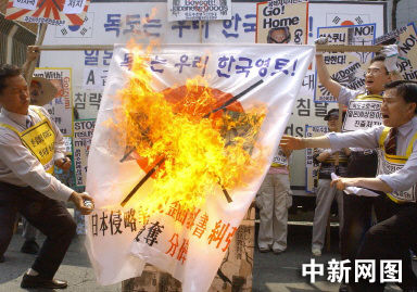 三個民族主義民間團體已在大使館和韓國總統(tǒng)府青瓦臺外同時播送了這首歌曲,從而開始了今天的抗議活動。一個民間團體在日韓兩國峰會會議所在地青瓦臺外張貼的一份聲明稱:“小泉首相沒有到訪韓國的資格,因為他從未就過去的罪行道歉,他只想加強日本的帝國主義。”