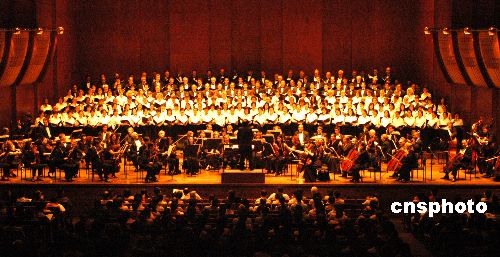 中美藝術家于當?shù)貢r間六月十九日在美國紐約林肯中心共同舉辦交響音樂會,紀念中國人民抗日戰(zhàn)爭暨世界反法西斯戰(zhàn)爭勝利六十周年。作者:龔文謨