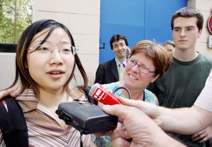 李李走出監(jiān)獄時(shí)顯然很激動(dòng),她說(shuō):“我非常高興”。她向前來(lái)接她的“男友和他的媽媽、以及其貢比涅大學(xué)的所有的教授和學(xué)生表示感謝”,她說(shuō):“他們給了我很多勇氣。”
