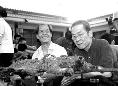剛剛從延安回來的陳忠實,帶著話劇版導演林兆華、主演濮存昕在白鹿原上轉(zhuǎn)悠了一天,據(jù)說收獲不小。晚上,當?shù)卮迕窠M織了對北京人藝一行的歡迎活動。四方小凳、鐵皮桌、山野菜、架子上散發(fā)著香味的烤全羊,濃濃的鄉(xiāng)土氣息讓一路走來的濮存昕有些激動。濮存昕很紳士,非要等到對面的陳忠實、林兆華落座后才緩緩坐下。