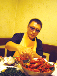 孫紅雷在南京拍片多次,就愛吃南京的大龍蝦,19日中午,特地趕去一家飯店吃龍蝦,開吃前他是談笑風(fēng)生,龍蝦一上桌,他就一言不發(fā),如入無人之境。眨眼功夫,一盤光了,第二盤剛上,我們以為他會(huì)說不要了,哪知孫紅雷竟說“再來兩盤!”看他吃得那么香,一桌人都樂壞了,記者在一邊悄悄估算了一下,孫紅雷這頓一人共吃了四盤90多只龍蝦。完了還執(zhí)意掏錢買了兩大包,說要帶回北京去。