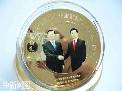 中新網(wǎng)6月22日電 香港金幣總公司在發(fā)行完“抗戰(zhàn)勝利60周年紀(jì)念幣”之后,日前又發(fā)行了一枚“歷史性的握手”紀(jì)念金銀幣。此幣正面是中國(guó)共產(chǎn)黨總書記胡錦濤與中國(guó)國(guó)民黨主席連戰(zhàn)在北京握手的彩色像,紀(jì)念幣的背面是國(guó)共兩黨的旗幟,旗下飛翔著和平鴿。