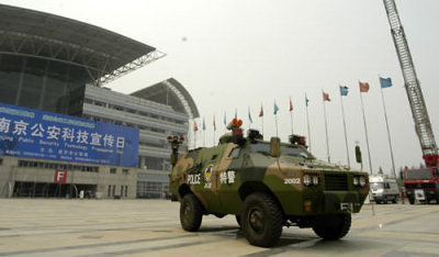 中新網(wǎng)6月23日點 據(jù)中國江蘇網(wǎng)消息,警用裝甲車可以裝備反坦克導彈!昨天上午,在南京國際公共安全產(chǎn)品技術(shù)展覽會上展出的警用新裝備。