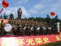 中新社長沙六月二十五日電(鄧霞周海清)為紀念毛澤東親手創(chuàng)建中共韶山特別支部八十周年,大型音樂舞蹈史詩《東方紅》交響合唱音樂會,今日在毛澤東的家鄉(xiāng)湖南韶山進行首次實景演出。四千余人在毛澤東銅像下聆聽那些傳唱了半個世紀的熟悉的經(jīng)典旋律。
