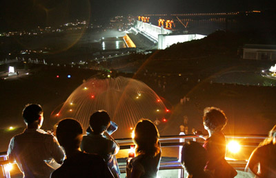 從明天起,斬?cái)嚅L江的三峽大壩,每天將允許1000名普通游客把這個(gè)龐然大物“踩”在腳下!7月1日,三峽大壩壩頂將首次對(duì)游客開放,但今年的開放時(shí)間因施工需要到9月30日截止,到明年汛期再行開放。本報(bào)記者于昨日趕到壩區(qū)并星夜上壩,打探到壩頂旅游臺(tái)前幕后諸多細(xì)節(jié)。
