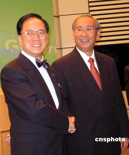 依照香港基本法有關(guān)規(guī)定,根據(jù)行政長(zhǎng)官曾蔭權(quán)的提名,國(guó)務(wù)院30日決定任命許仕仁(右)為香港政務(wù)司司長(zhǎng)。作者:譚達(dá)明