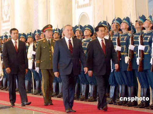 圖:納扎爾巴耶夫舉行儀式歡迎胡錦濤