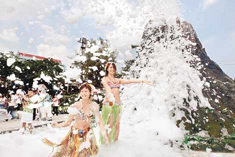 為迎戰(zhàn)將于九月開(kāi)幕的香港迪士尼樂(lè)園,今年“夏水禮”瞄準(zhǔn)港人喜歡陽(yáng)光與海灘的心態(tài),為活動(dòng)滲入南太平洋島國(guó)元素,旅客在戲水時(shí)猶如置身充滿色彩的熱帶小島。海洋公園行政總裁苗樂(lè)文稱,該園耗用了三個(gè)月時(shí)間、斥資一千萬(wàn)元籌辦夏水禮,該活動(dòng)共有七個(gè)項(xiàng)目,包括建造全港首個(gè)主題公園內(nèi)的沙灘——“南島沙樂(lè)園”,場(chǎng)內(nèi)廿四個(gè)小食亭更準(zhǔn)備數(shù)十款夏威夷美食飲品。他透露,該園租了十二個(gè)貨柜,從內(nèi)地運(yùn)來(lái)幼沙,并用了數(shù)千加侖液體去制造泡沫。