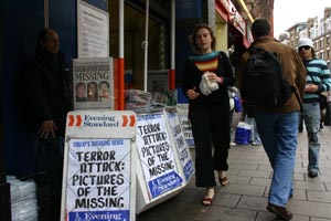 倫敦遭受襲擊成了報販們的巨幅廣告