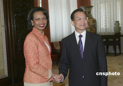 中新網(wǎng)北京七月十日電(記者李靜)中國國務(wù)院總理溫家寶十日在北京會見美國國務(wù)卿賴斯時(shí)強(qiáng)調(diào),中國堅(jiān)持走和平發(fā)展道路;中國現(xiàn)在沒有,將來也不會干涉和威脅任何國家。