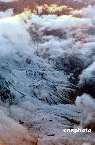 據(jù)中國科學(xué)院天山冰川觀測試驗站介紹,根據(jù)長期科學(xué)觀測顯示,受氣候變化與地球持續(xù)升溫影響,新疆天山一號冰川消融加快,有觀測記錄的45年間冰川厚度減薄11米之多,損失總量約為1838萬立方米。圖為空中俯瞰新疆天山山脈。作者:韓藝冰