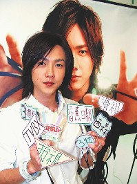 學(xué)員自制看板、道具,還有各家麥克風(fēng)牌包括“抬視”、“滑視”、“3!薄ⅰ拔魃、“TVBX”等,有模有樣。面對這群未來的準(zhǔn)DJ,黃義達(dá)沒想到他們的發(fā)問跟媒體一樣勁爆。學(xué)員特制五位美女看板,有林志玲、莫文蔚、陶晶瑩、蔡依林和蕭薔,要他從中挑選“老婆”、“女朋友”、“性感女神”的最佳人選。
