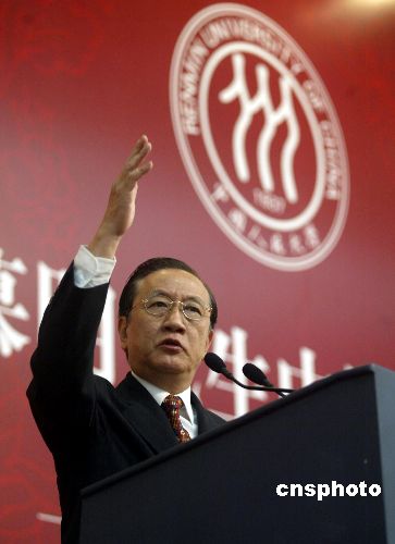 最后引用中山先生的話,我在中山陵已經(jīng)講過,但是我在中國人民大學這里也要講一句同樣的話,中山先生說“革命尚未成功,同志仍需努力”。中山先生一生追求的是聯(lián)合世界上平等待我之民族,共同奮斗。今天中華民族是跟其他民族可以和平相處的,中國的崛起是和平的崛起。所以我們追隨中山先生這樣一個偉大的抱負。年輕朋友們,路是大家走出來的,統(tǒng)一尚未完成,同胞仍需努力。謝謝大家!(根據(jù)電視錄音整理)
