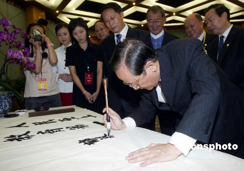 郁慕明在北京為中國人民大學(xué)題詞“人民至上,教育為本”。作者:史利