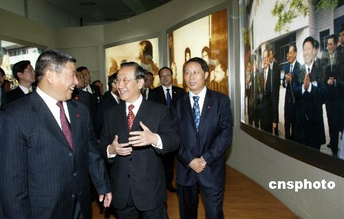 郁慕明在中國人民大學(xué)校長紀(jì)寶成(左)的陪同下,參觀該校校史展。作者:史利