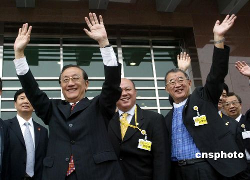 七月十二日,新黨大陸訪問團在中國人民大學(xué)參觀訪問,新黨主席郁慕明向師生們揮手致意。作者:史利