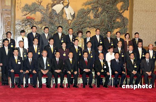 圖:胡錦濤與臺灣新黨“民族之旅”訪問團(tuán)合影