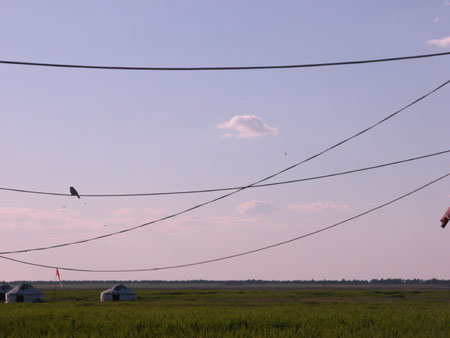“吃飽喝足”之后,游客就可以前往度假村后的草原進行游玩。在這片內(nèi)蒙古大草原延伸到的地區(qū),有齊腰身的高草,有悠閑吃草的駱駝,也有在落日時分空曠、遼闊草原的優(yōu)美景色。