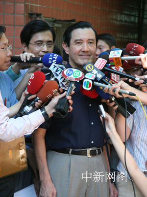 7月16日,中國國民黨主席選舉在全臺(tái)601個(gè)投票所展開。圖為1號(hào)參選人、臺(tái)北市長馬英九在居家附近的臺(tái)北興德小學(xué)參加投票前,接受記者采訪。中新社記者 董會(huì)峰