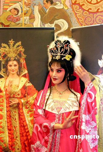 中國京劇院與西藏自治區(qū)藏劇團(tuán)聯(lián)合創(chuàng)辦演出的京劇、藏戲《文成公主》,擬于八月二十八日在拉薩舉行的西藏自治區(qū)成立四十周年慶典活動中首演。藏戲《文成公主》作為八大經(jīng)典藏劇之一,早已享譽(yù)劇壇。此次藏漢聯(lián)手創(chuàng)排《文成公主》,將在注重京劇、藏戲美學(xué)特征的基礎(chǔ)上,強(qiáng)調(diào)兩種戲曲藝術(shù)的兼顧與融合,并賦予作品新的時(shí)代精神。圖為七月十八日在人民大會堂舉辦的京劇、藏戲《文成公主》新聞發(fā)布會上文成公主的扮演者鄧敏正在表演該劇的精彩片段。作者:張勤