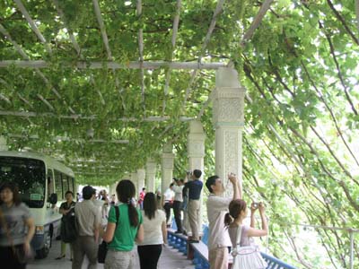 新疆有一首歌謠“吐魯番的葡萄哈密的瓜,庫爾勒的香梨人人夸,葉城的石榴頂呱呱。”來到吐魯番,不到葡萄溝品嘗葡萄的甜美和清涼,便不能領(lǐng)會吐魯番火辣辣之外的那份清涼愜意。